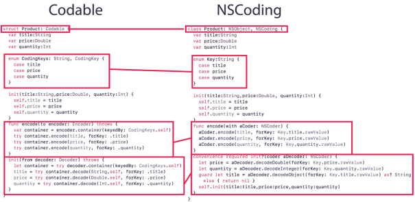First of all, what’s the big deal with this Codable protocol? Is it really worth the effort to learn a new approach when we already have NSCoding, that’s worked fine for years for archiving data? And if you look at a type implementing both, they are pretty similar.