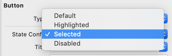 Pretty easy right? Just like that, our button now toggles between the ‘Default’ and ‘Selected’ Control States. We can customize how these states look in the attributes inspector for the button.